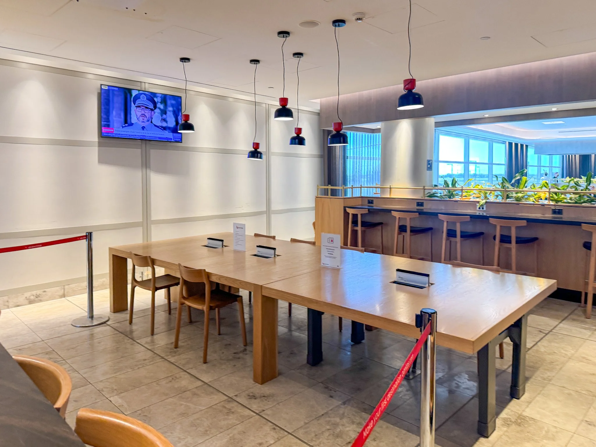 Right in the middle as you enter the lounge there’s also a dedicated zone for business with ample charging and table space.